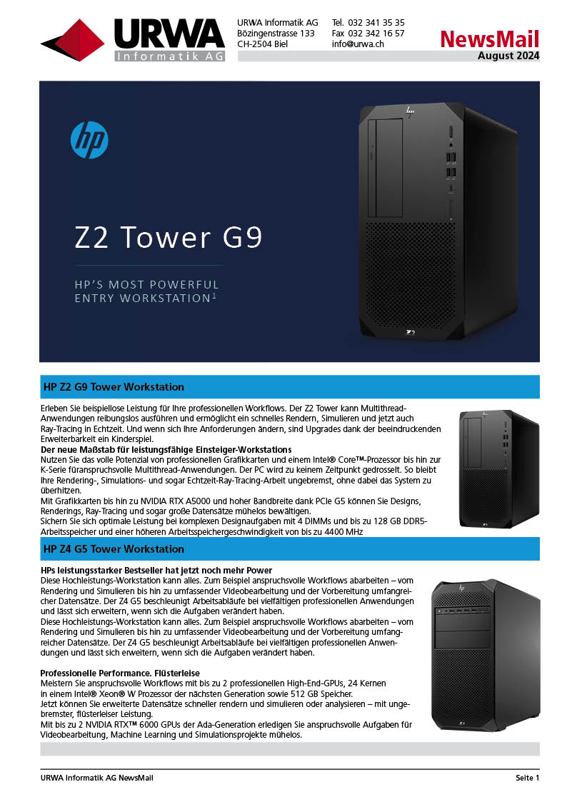 URWA Informatik AG Bözingenstrasse 133 CH-2504 Biel Tel 032 341 35 35 Fax 032 342 16 57 Mail info@urwa.ch |